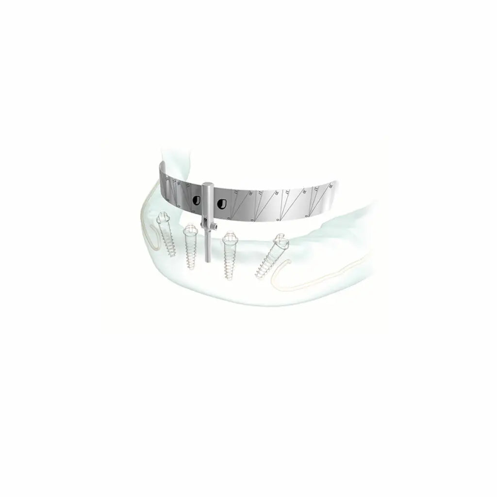 A sablon mandibuláris esetekben a nyelv visszahúzásában is segít. A sablonon található függőleges vonalak referenciaként szolgálnak a párhuzamos elülső implantátumok és az enyhén döntött hátsó implantátumok elhelyezéséhez, irányítva a fúrót a helyes behelyezéshez (a szög nem haladhatja meg a 45°-ot).